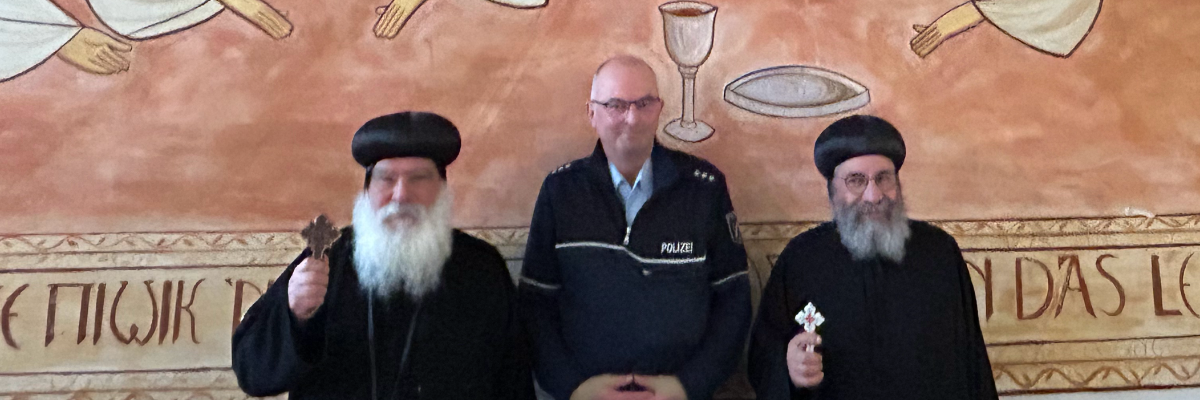 Polizeihauptkommissar Klaus Geiser von der Polizei Höxter war heute in seiner Funktion als Kontaktbeamter für interkulturelle Angelegenheiten (KIA) zu Gast im Kloster Brenkhausen. Anlass des Besuches war die persönliche Gratulation zur Ernennung von Bischof Anba Damian zum Metropoliten der koptisch-orthodoxen Kirche.